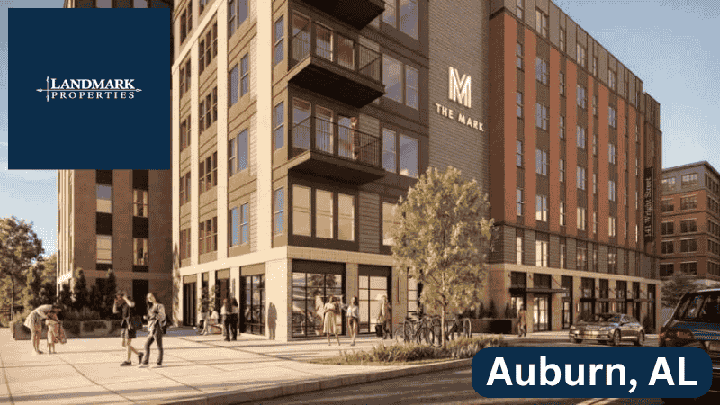 DEVELOPMENT: Landmark to break ground on 825-bed project. Landmark Properties is set to hold a groundbreaking ceremony for a new luxury student housing community in Auburn that will serve Auburn University students and the surrounding area. The development will include 825 beds across 329 units with floor plans ranging from studios to five-bedroom apartments, along with 31,000 square feet of amenities such as a clubhouse, rooftop pool, Jumbotron, grilling areas, fire pits, fitness center, sports simulator, and study lounge with a café and computer labs.